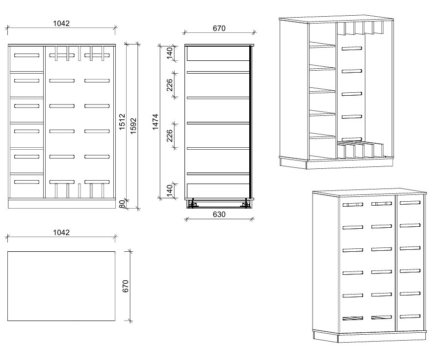 104 × 159 × 67 cm (B × H × T)