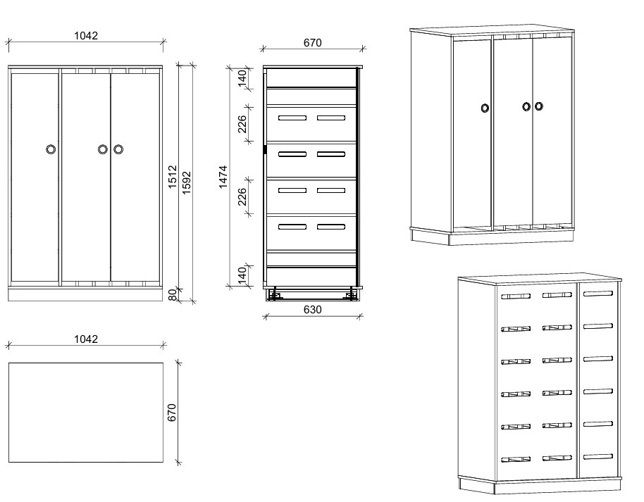 104 × 159 × 67 cm (B × H × T)