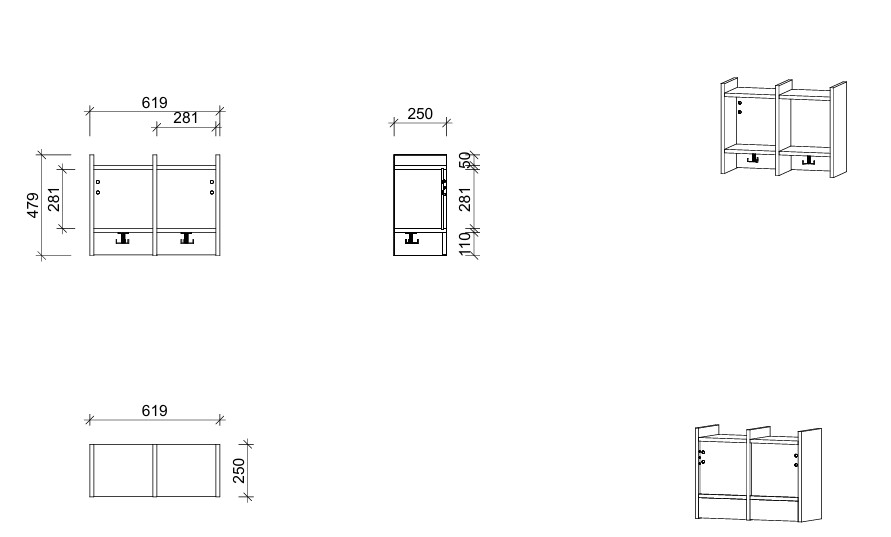 Garderobenablage | 2 Plätze - Basic | 62 x 48 x 25 cm