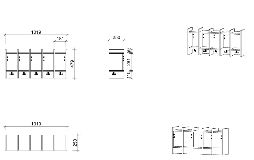 Garderobenablage | 5 Plätze - Basic | 102 x 48 x 25 cm