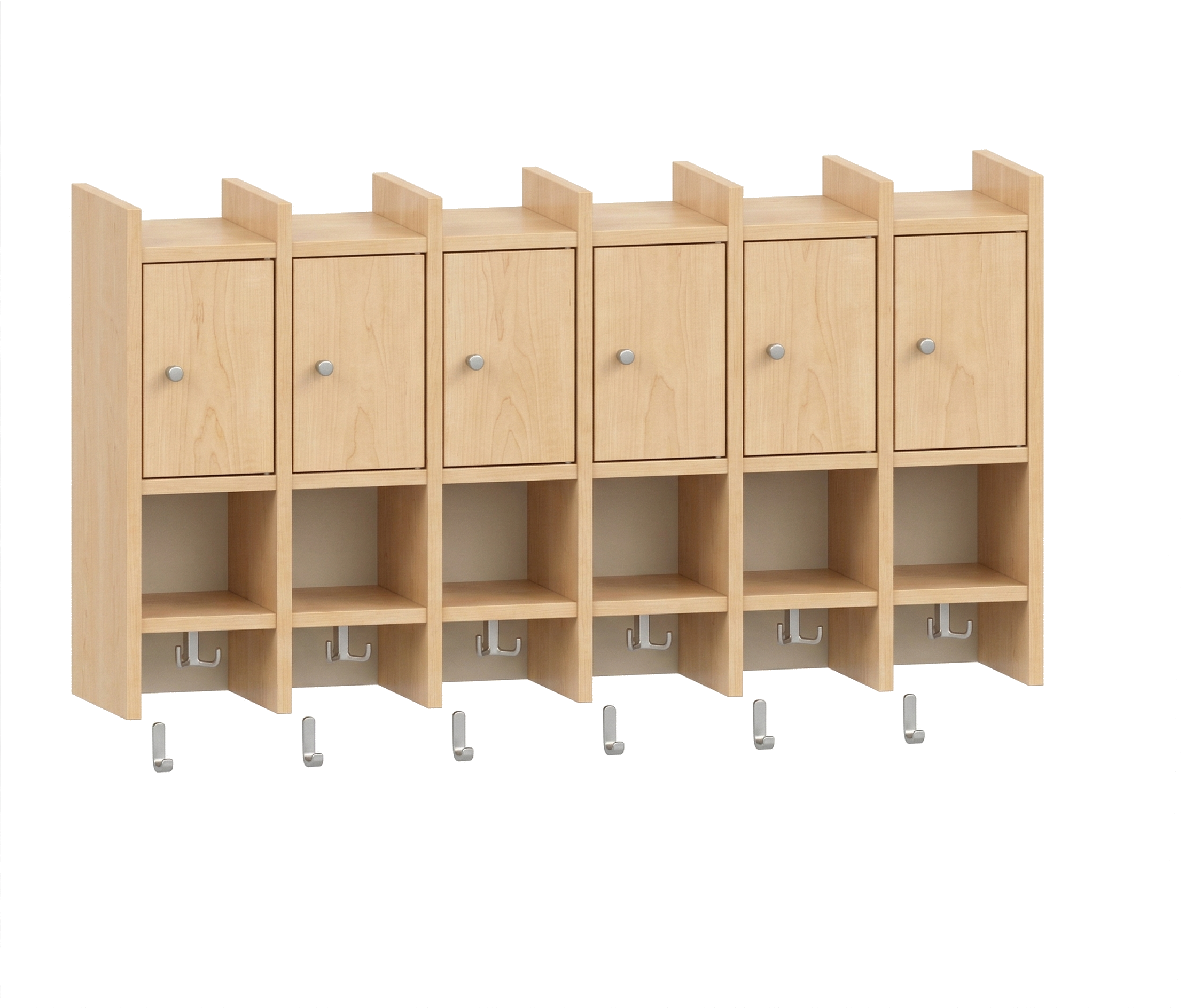 Gefertigt aus melaminharzbeschichteter Spanplatte mit widerstandsfähigen ABS-Kanten ist die Garderobenablage für den täglichen Einsatz in Bildungseinrichtungen ausgelegt. Die stabile Konstruktion sorgt für eine sichere Nutzung im Garderobenbereich. Türen und Korpus sind auf eine langlebige Nutzung im täglichen Wechsel zwischen Aufbewahren, Abnehmen und Anhängen ausgelegt.