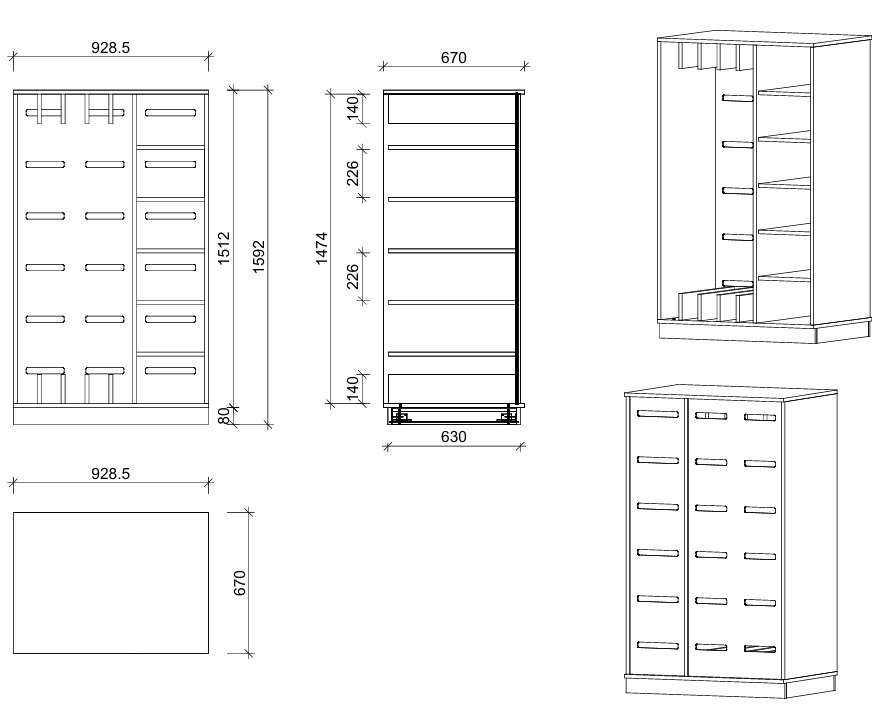 93 × 159 × 67 cm (B × H × T)