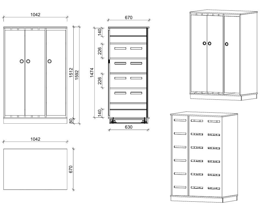 104 × 159 × 67 cm (B × H × T)