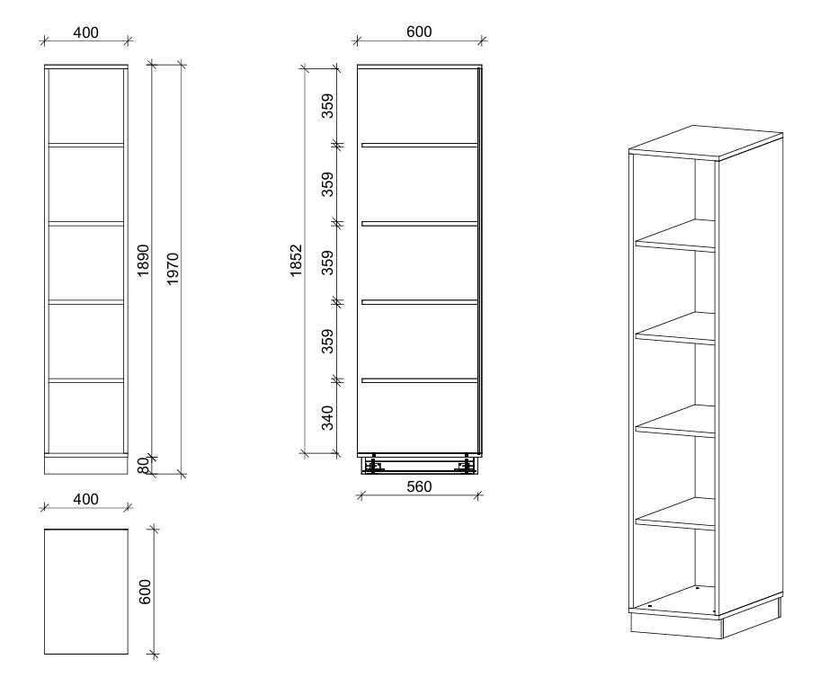 Regal mit 4 Fachböden – 40 × 197 × 60 cm