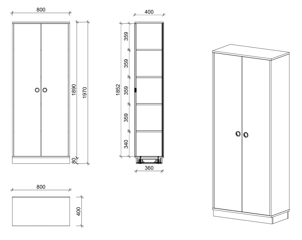 Produktinformationen "Schrank | 2-türig geschlossen – Basic | 80 × 197 × 60 cm"