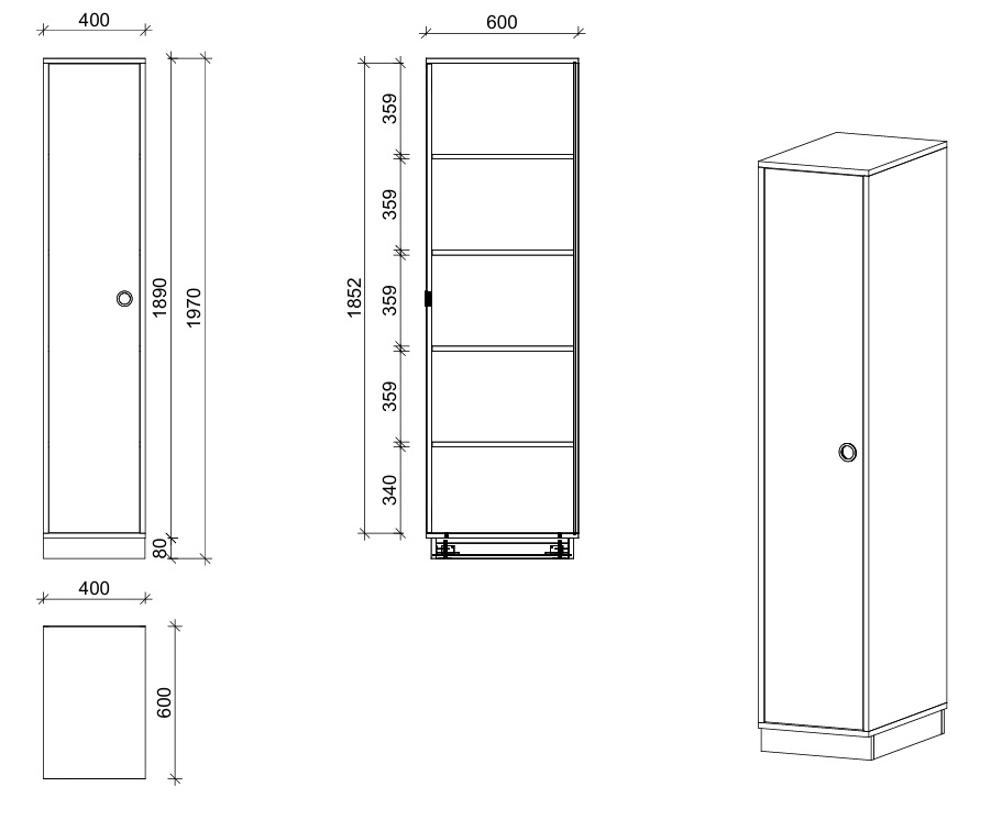 Schrank mit Tür links – 40 × 197 × 60 cm