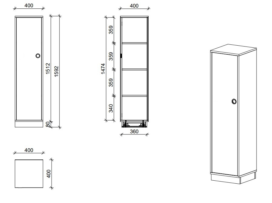 Schrank | mit Tür links – Smart | 40 × 159 × 40 cm