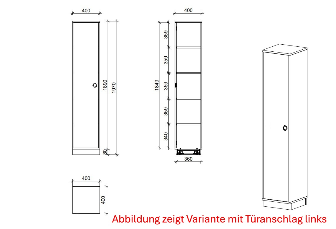 - Schrank mit Drehtür rechts und 4 Fachböden
