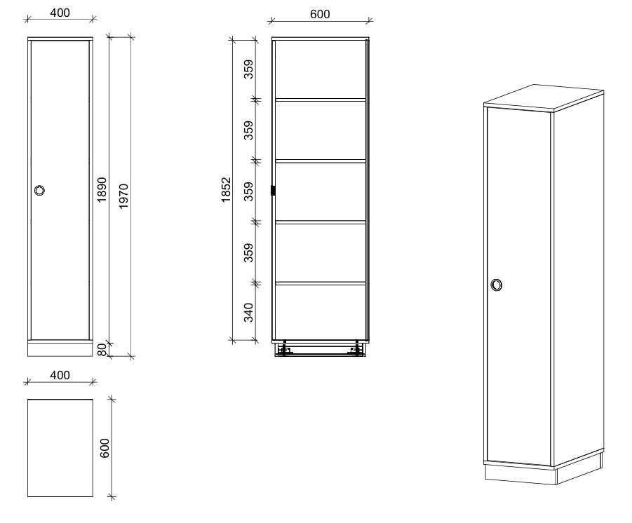Mit seinen Maßen von 40 × 197 × 60 cm (BxHxT) nutzt der Schrank die Raumhöhe effizient und bietet großzügigen Stauraum auf kompakter Grundfläche. Die klare Fachaufteilung unterstützt eine strukturierte Organisation und erleichtert Abläufe im pädagogischen Alltag.