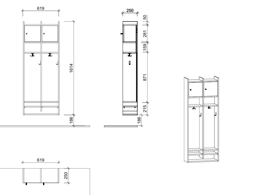- wandhängende Spindgarderobe mit 2 Plätzen