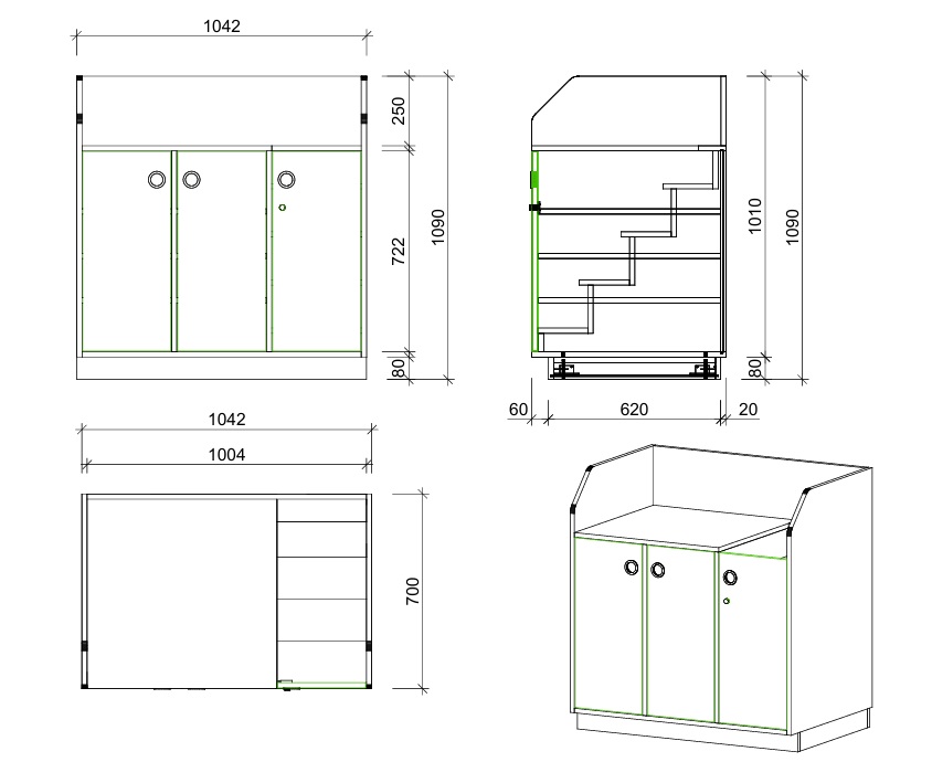 Die Kombination aus ergonomischer Wickelfläche und klar gegliedertem Stauraum sorgt dafür, dass alle Pflegeutensilien geschützt, übersichtlich und jederzeit griffbereit sind. So entstehen ruhige, verlässliche Abläufe für Kinder und Fachpersonal.