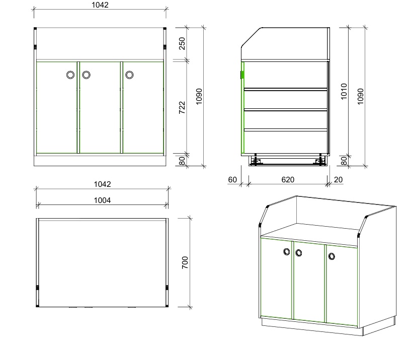 Robuste Materialien und eine hochwertige Verarbeitung machen die Möbel dauerhaft einsatzfähig. Gedämpfte, kugelgelagerte Auszüge mit Softclose ermöglichen ein leises und kontrolliertes Schließen – ein entscheidender Vorteil im Pflegebereich. Der austauschbare Sockelrahmen trägt zusätzlich zur Langlebigkeit und Wirtschaftlichkeit bei.