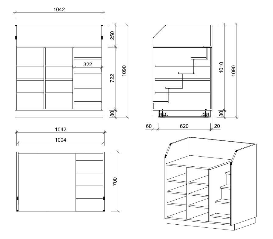 Die Kombination aus ergonomischer Wickelfläche und klar gegliedertem Stauraum sorgt dafür, dass alle Pflegeutensilien geschützt, übersichtlich und jederzeit griffbereit sind. So entstehen ruhige, verlässliche Abläufe für Kinder und Fachpersonal.