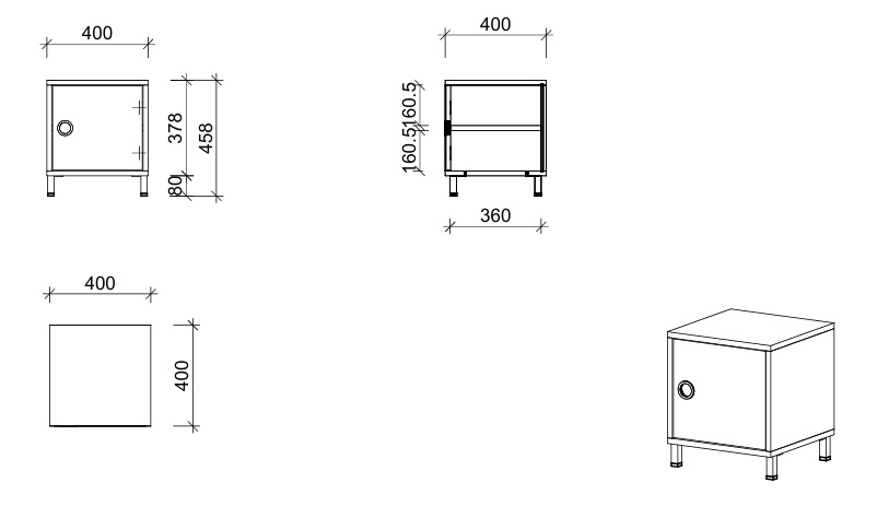 - Aufbewahrungswürfel mit Tür rechts und Möbelfüßen
