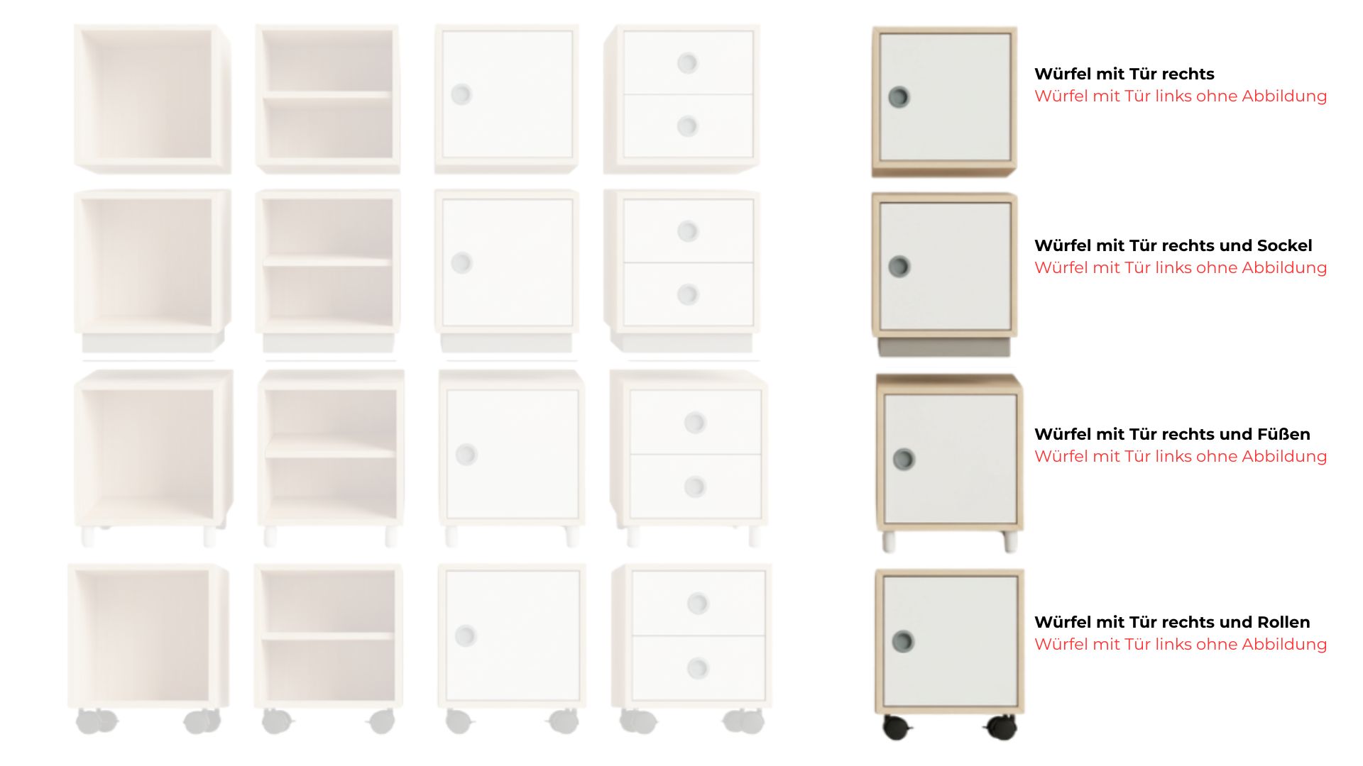- Aufbewahrungswürfel mit Tür rechts und Sockelrahmen